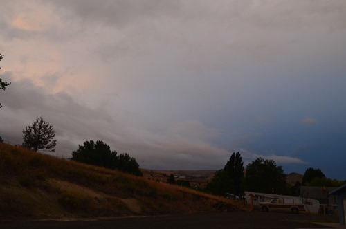 Last night we had wild thunderstorms to accompany our return drive to the Clarno Unit of the John Day Fossil Beds. We passed by earlier in the day, deciding that we would return the 20 miles or so to hike after we settled into the fairgrounds. I was hoping for that great sunset light that makes for non-ordinary photos.