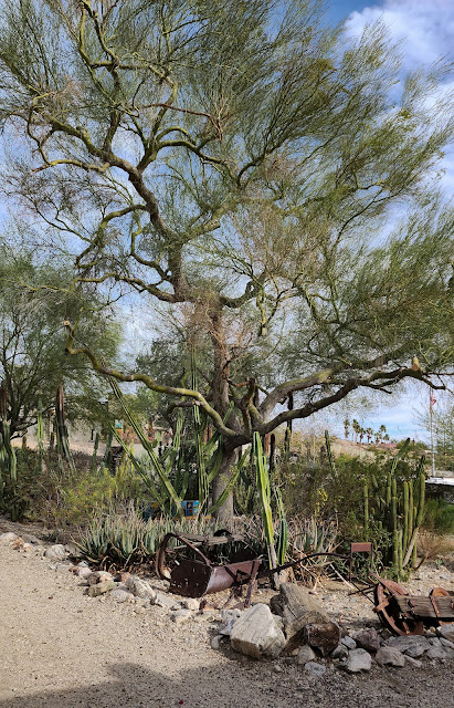 Each of these communities has its own personality, and there are slight differences between the opulence of the huge country clubs and golf courses that line the boulevards and the type of architecture that prevails.  When searching for anything, you first need to figure out in which town it is located and then decide which route you will take to cross the dusty open desert to the south side of Interstate 10 and then to your destination.  As many years as we have visited Desert Hot Springs, Mo and I are pretty good at navigating the valley and making our way to Costco or Trader Joe's, or maybe the quilt shops in La Quinta or the zoo in Palm Desert.  It takes a bit of getting used to, but we manage.
